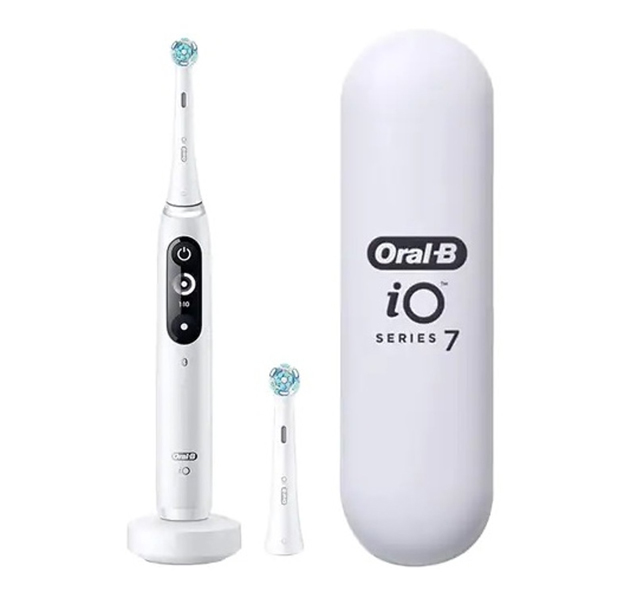 The Oral-B iO series combines powerful, but gentle micro vibrations with Oral-B's unique dentist inspired round brush head design for a professional clean feeling every day. The smart pressure sensor helps to keep you from brushing too hard to protect your gums and enamel. Artificial intelligence recognition using an interactive display helps guide you to your best clean for all areas of the mouth. A 2-minute quadrant timer comes built in that pulsates every 30 seconds, ensuring a complete clean. The frictionless, smooth magnetic drive system transfers energy to the bristle tips for a clean that wows. Replace your Oral-B iO series replacement brush heads every 3 months for best results
